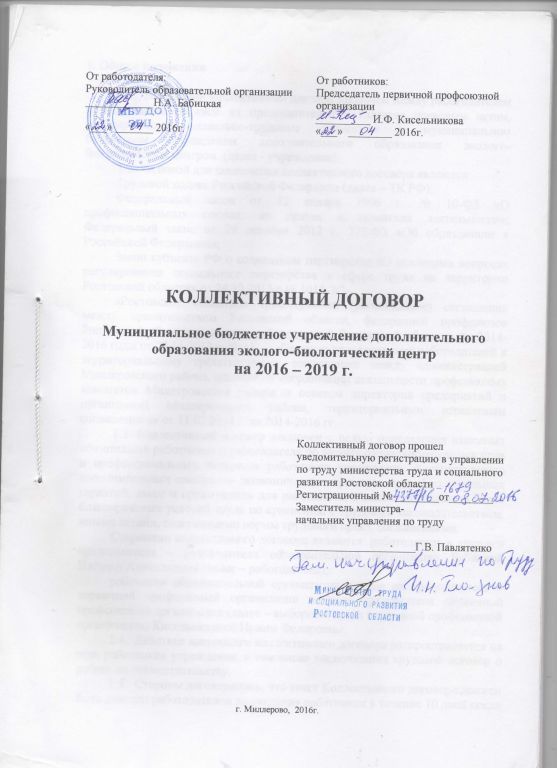 Коллективный договор МБУ ДО ЭБЦ 2019-2022 гг. подписан